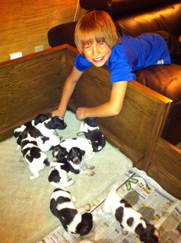 Our good friends, Bill and Shannon, stopped by this week with their 3 boys, Will, Foster and Owen. Foster took a special liking to the puppies and only wanted to take 3 home!