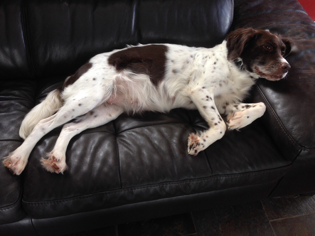 Litha has gained almost 10 pounds with 2 weeks to go. We are expecting the her to whelp around March 16th.
