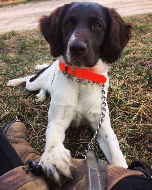 The F litter is due in 9 days, and the E litter is 7 months old today. So I thought we would post some recent pictures from a few of the E litter pups. Training is going well, and pups have been pointing nicely.