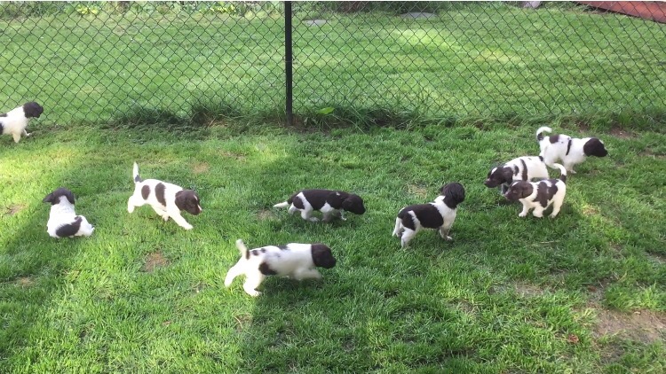 F litter puppies first day outside