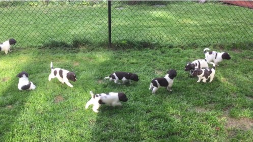 After raining for three straight days, we finally got some nice weather, and the pups enjoyed their first day outside. Click on the link below for a short video of the pups playing in the kennel run.